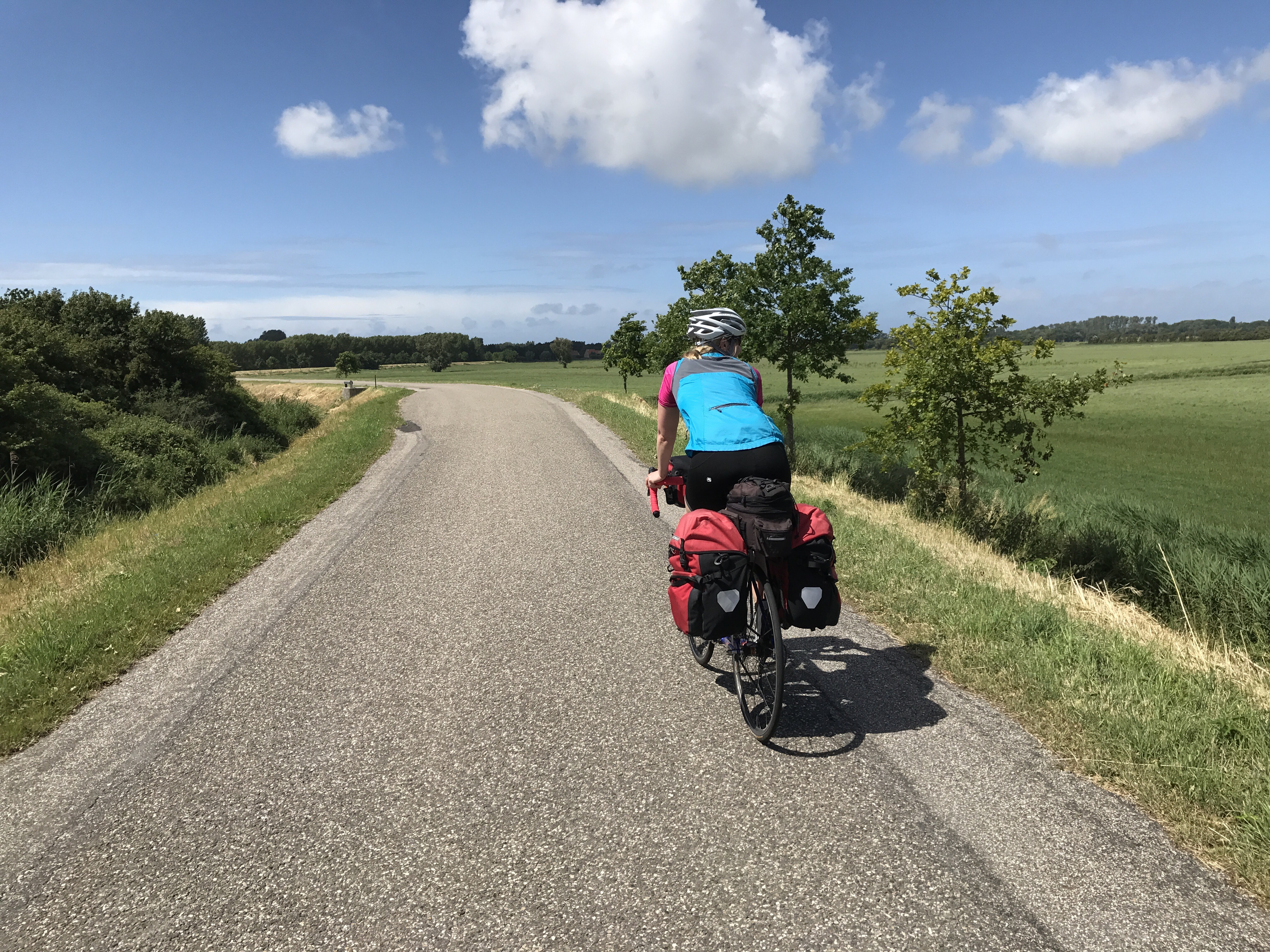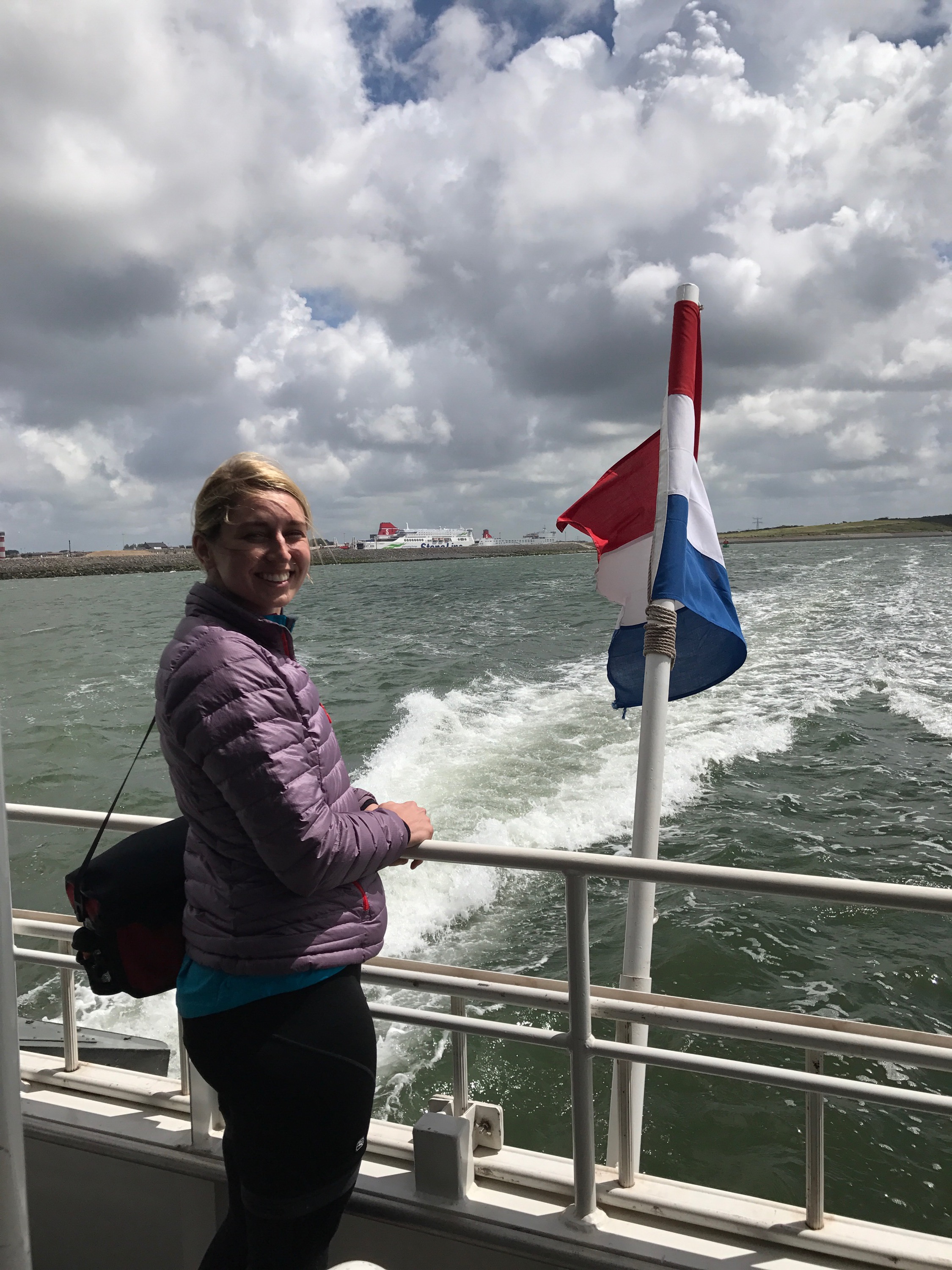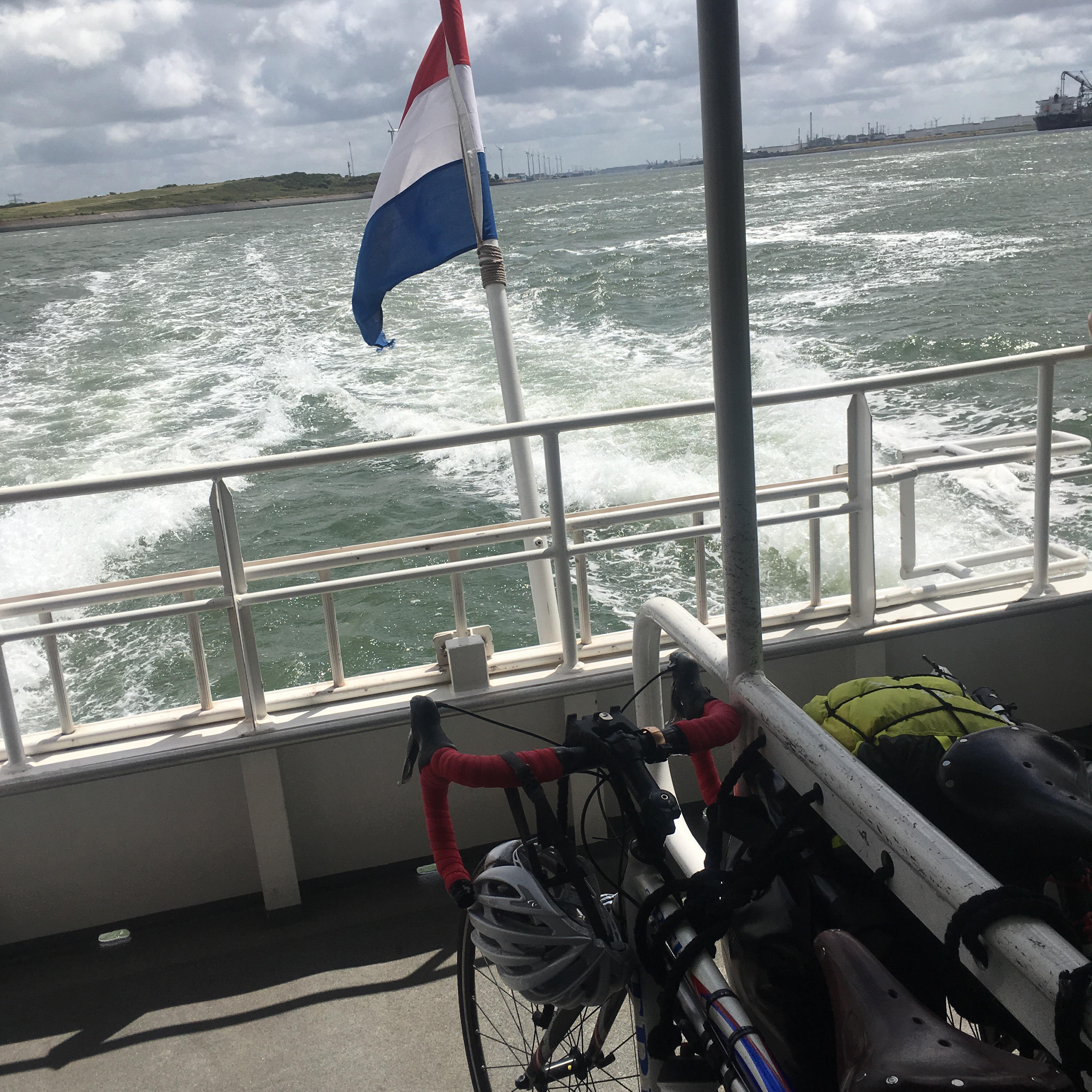 Today was an adventure! We saw the address where my (Caitlin’s) grandfather grew up in The Hague. We rode through a national park of the wildest sand dunes. Took a ferry across the outer port station of Rotterdam and saw hundreds of ginormous transport ships being loaded. Crossing the Zeeland we rode acoss 7km+ of dikes and saw hundreds of gutsy Dutch kitesurfing the North Sea. The surfers would no joke get two stories worth of air.