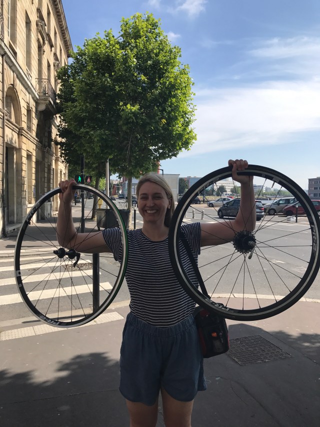 We successfully located a bike shop in Le Havre which had new wheels for Caitlin, and left town around 10am. It wasn’t the most pleasant of city exists, with bike paths beginning and then abruptly ending, but we managed to get out. Coincidentally, Andrew also learned while in Le Havre that his grandfather arrived in Europe at this port prior to beginning his tour for World War II.