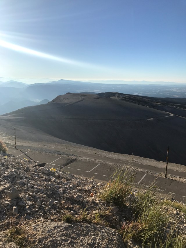Our attack started at 4:20 am in the dark from Bedoin. Club organizers advise an early start to avoid making the third climb “an afternoon Hell” (how’s that for a dramatic French translation). Few things heighten the sense of adventure like rolling out before the sun rises. It was just us and the mountain. We had lights to see the road but it was a bit eery winding through the thick pine forest. About an hour in the warm glow of sunrise filtered in and it was beautiful.