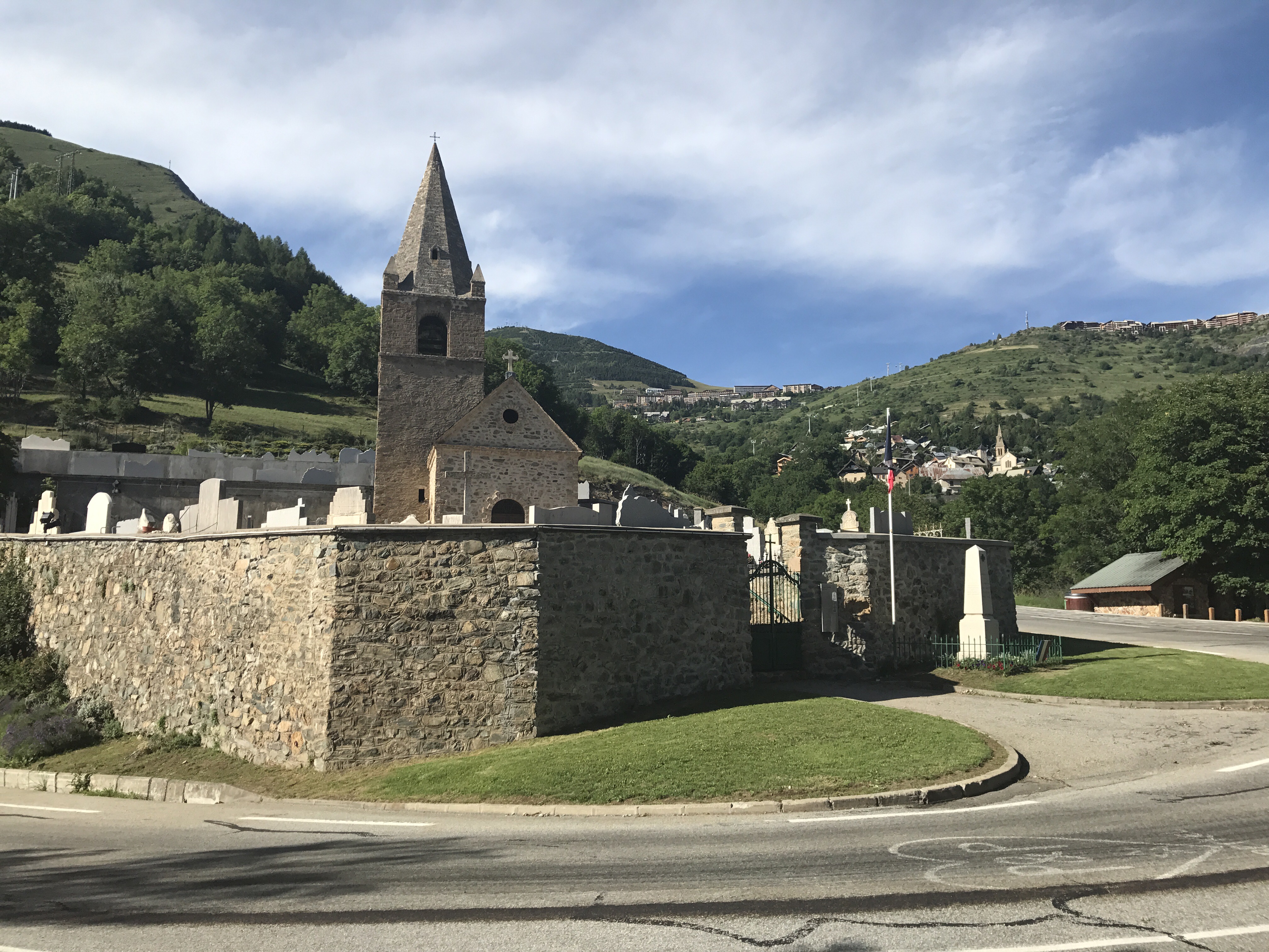 The next day we drove to Alpe d’Huez, another famous Tour de France climb in the Alps. We delayed our start until ~4:30pm since it was far hotter than we were hoping. There are 23(?) switchbacks along the 14km route. The toughest section is the first 2km at 10% grade, but the remaining sections are a relatively easier 8-9%. After Ventoux, this climb seemed far more doable. It took us about 1.5 hours to go up, with a fantastic descent dropping back down to town.