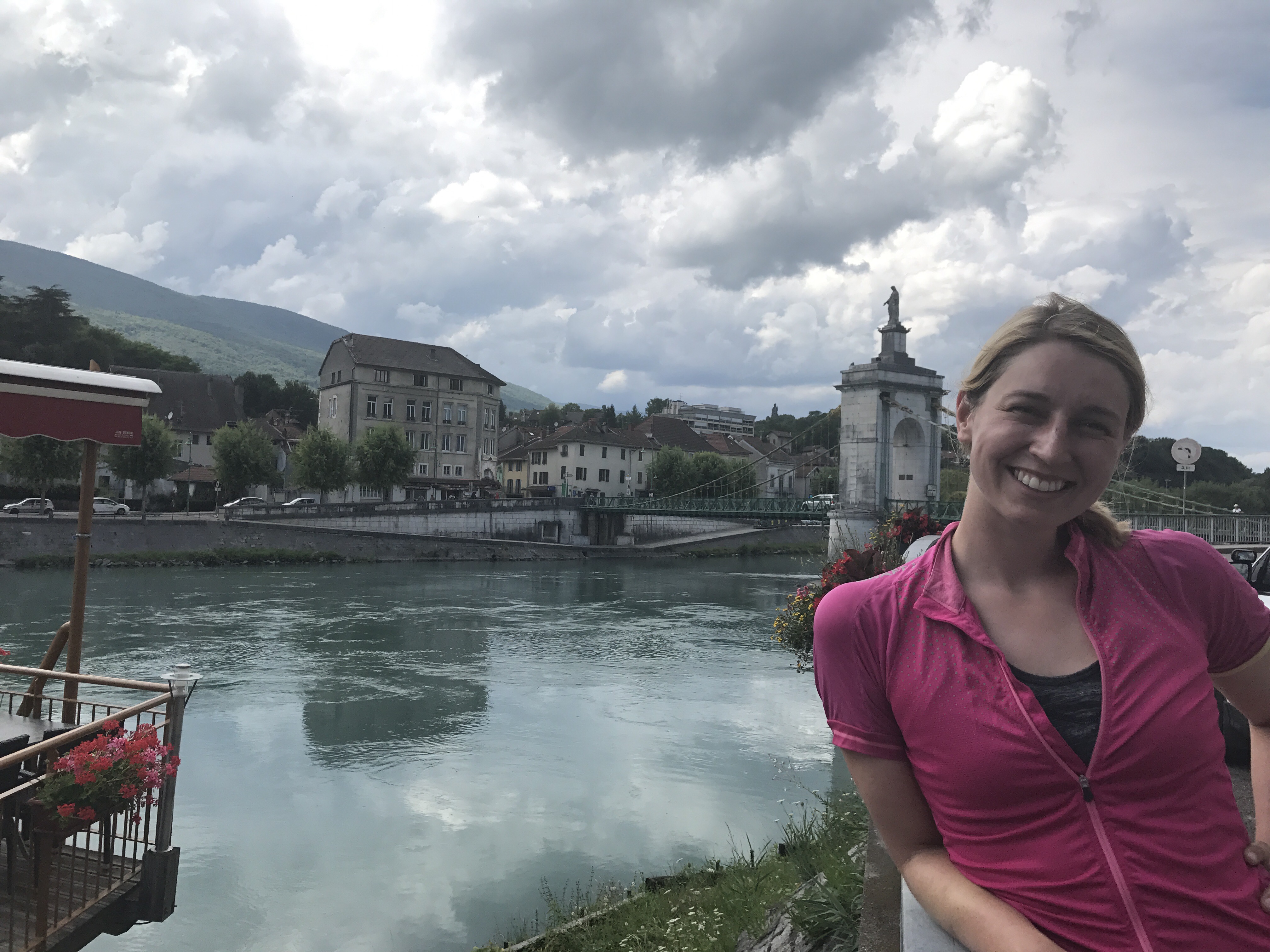 We biked around Lake Bourget, which was nice, and met up with the Rhone River route (Via Rhona) to the north. It being 1) lunch and 2) a Monday, we had an impossible time finding any hotels or campsites which were open. Luckily a campground in Seyssel was open so we stopped there for the evening. It’s a great midsized town along the Rhone, and ran into 3-4 other touring cyclists at the same campground.
