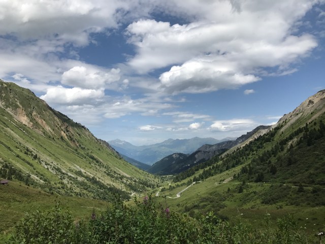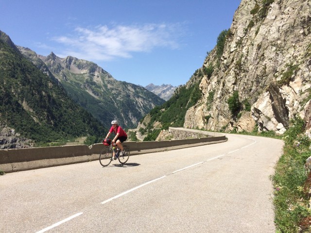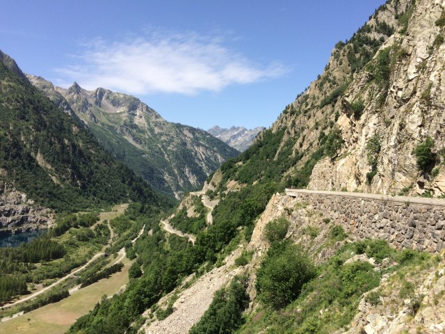 The start of the ride was beautiful, and headed straight towards the mountains. The road was absolutely packed with cyclists, which is usually a good sign, but we noticed none of them had touring bags. We then saw signs that the road would be closed later in July for a different stage of the Tour – awesome!, we thought, until we saw our Tour magazine guide described the stage as “A Classic in the Alps.” Uh oh.
