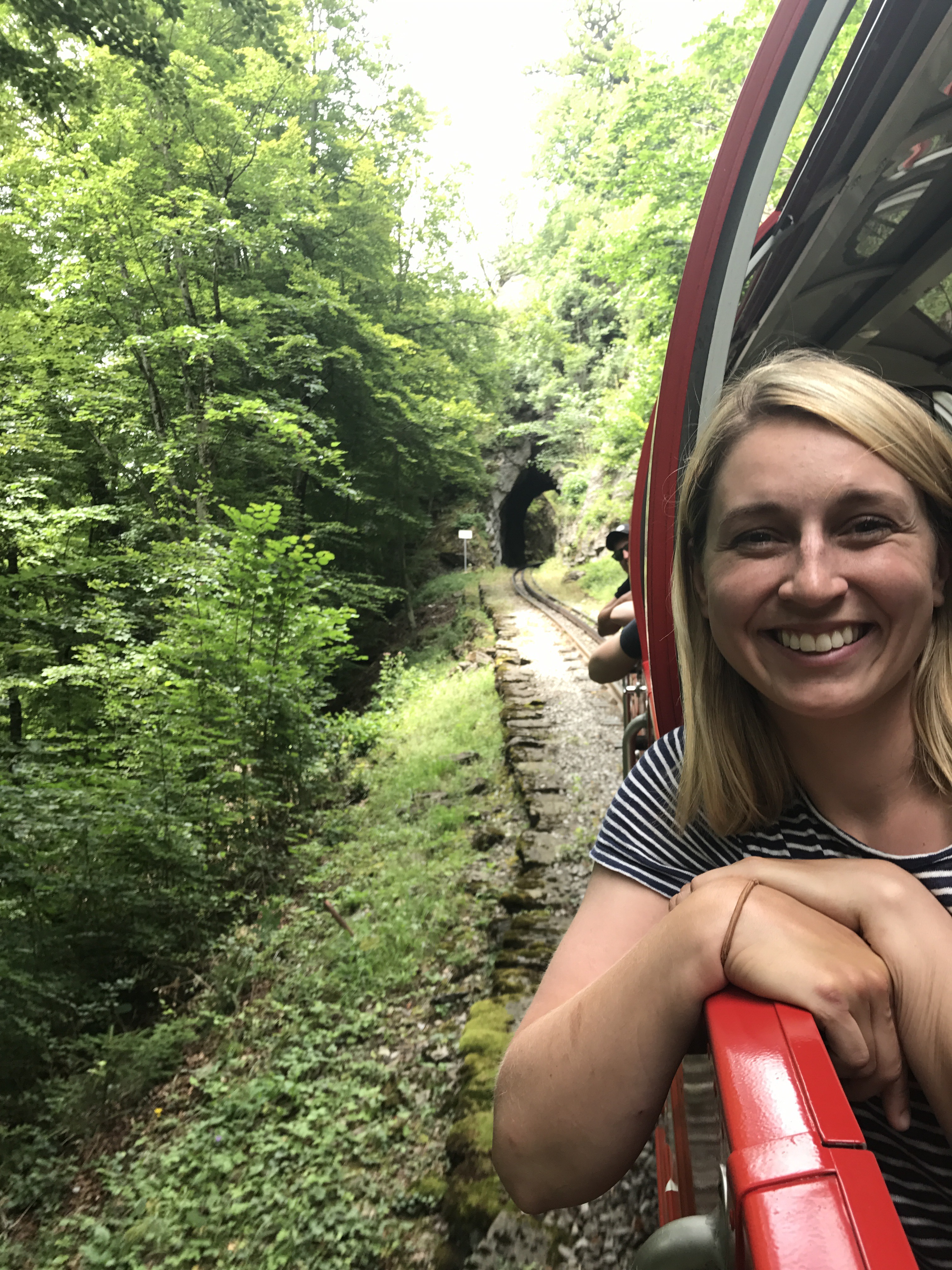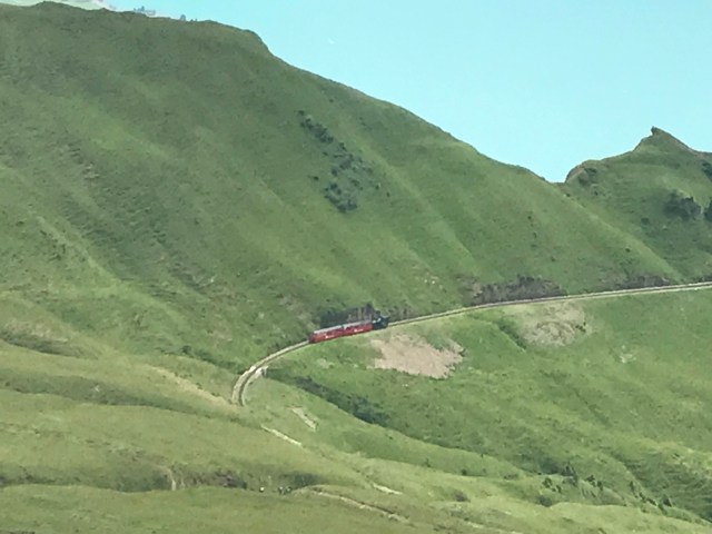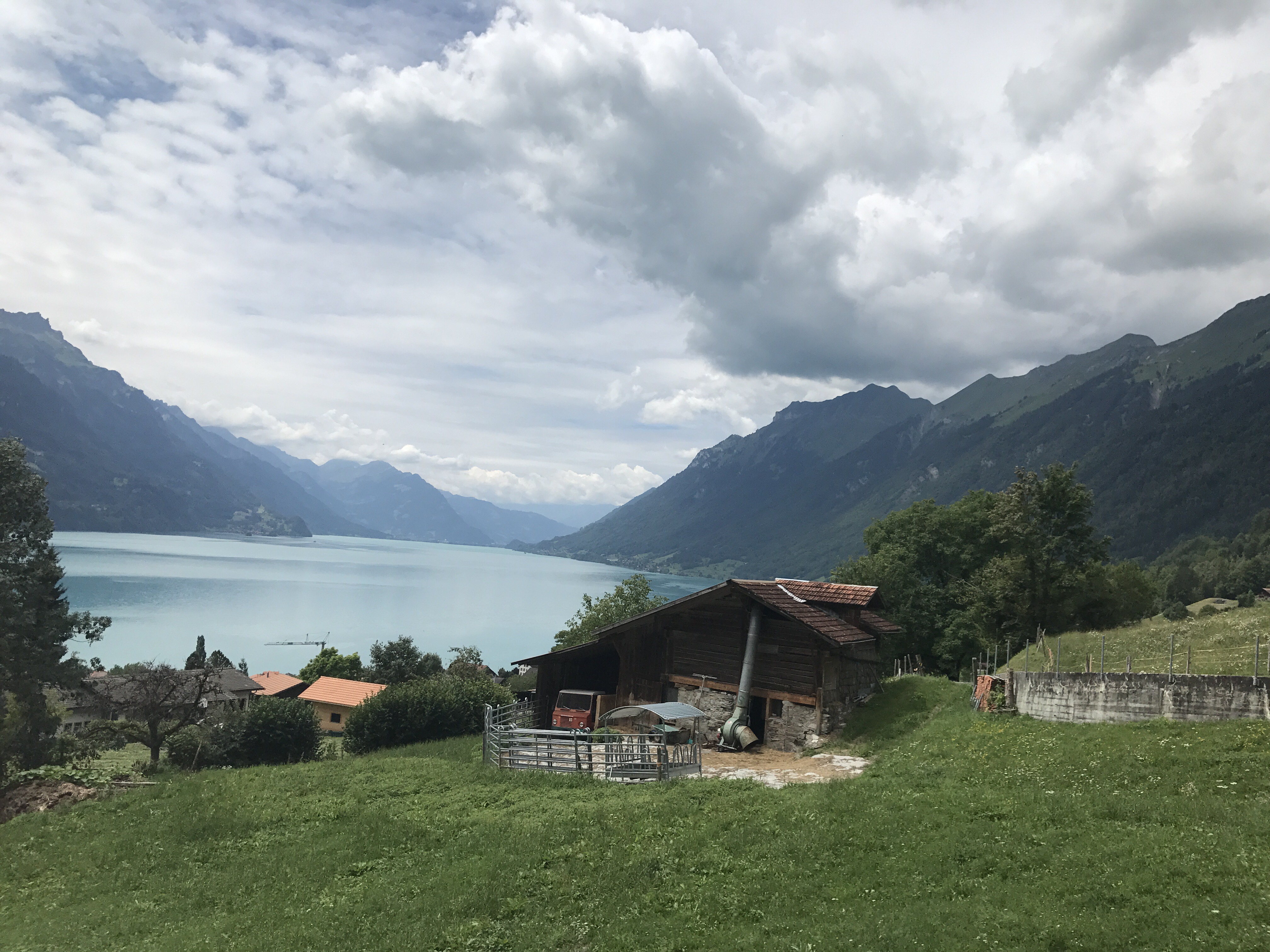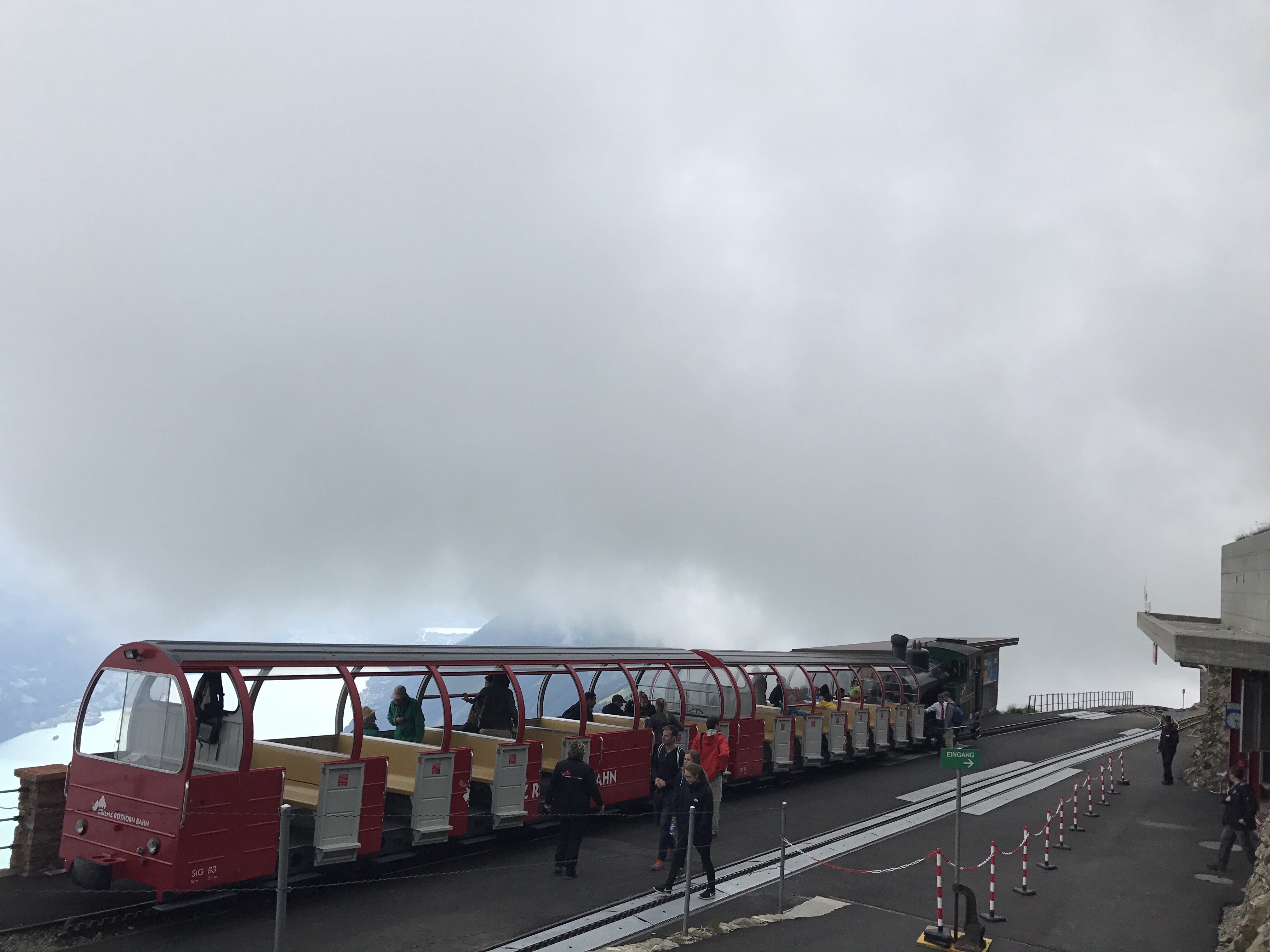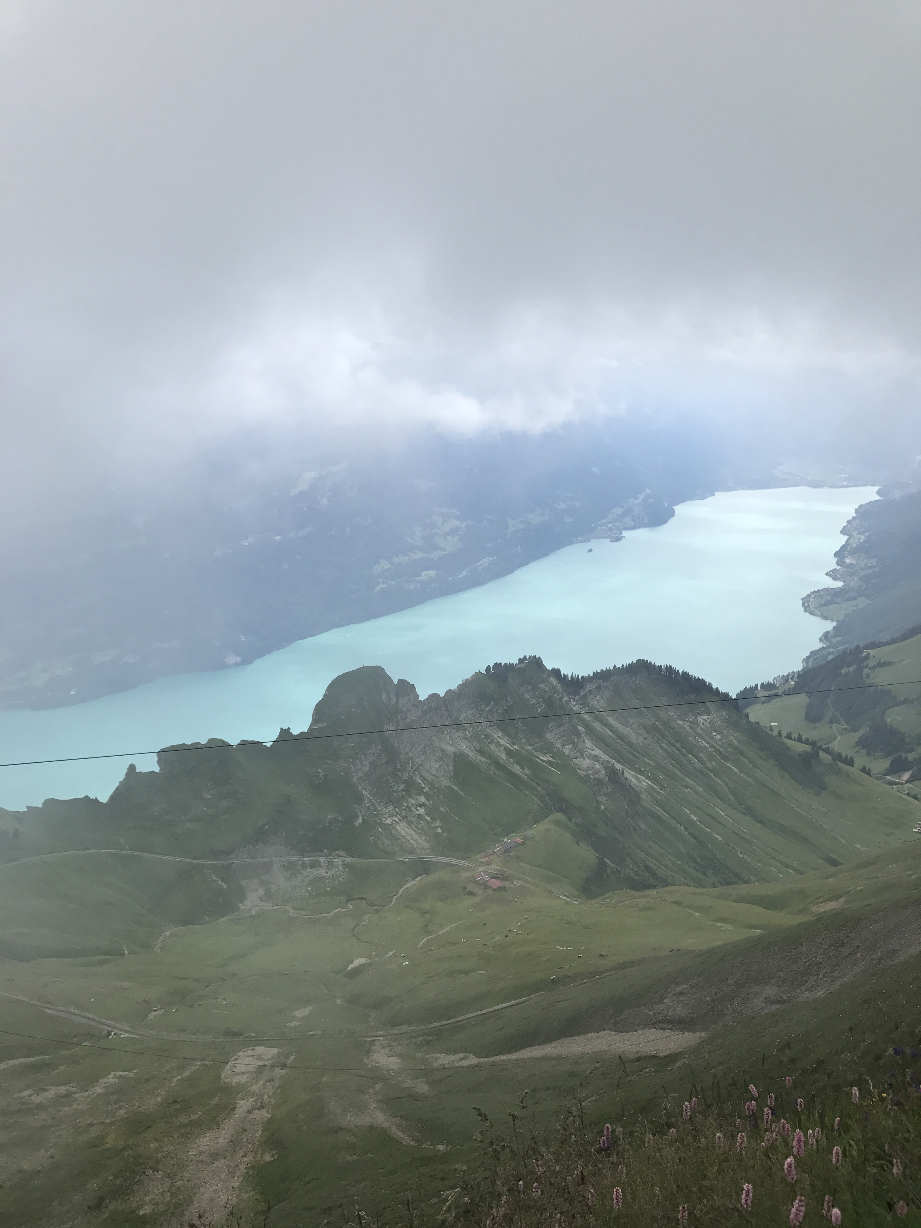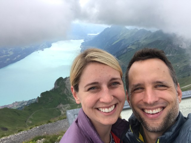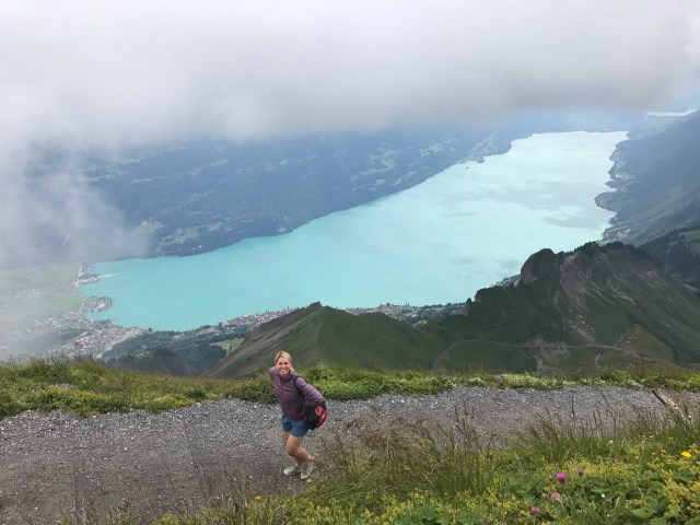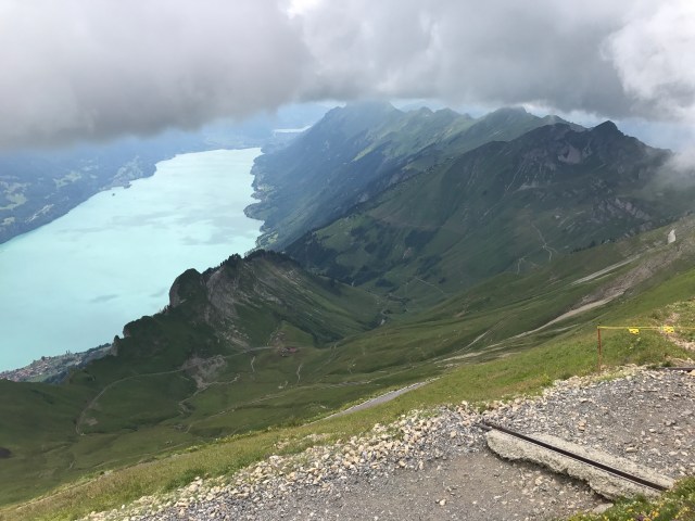The rest of the route into Interlaken followed the lake and was mostly downhill. We arrived around 3pm, checked into our campground, and went downtown for coffee and dinner. We spent a second day exploring the Interlaken area, including taking a ~30min train to Brienz in order to catch a steam-powered cog train to the top of a mountain peak overlooking the region. The train was about an hour long, and went at a very steep angle up (thus the need for cogs). It was a great way to climb a mountain while exerting zero physical effort!