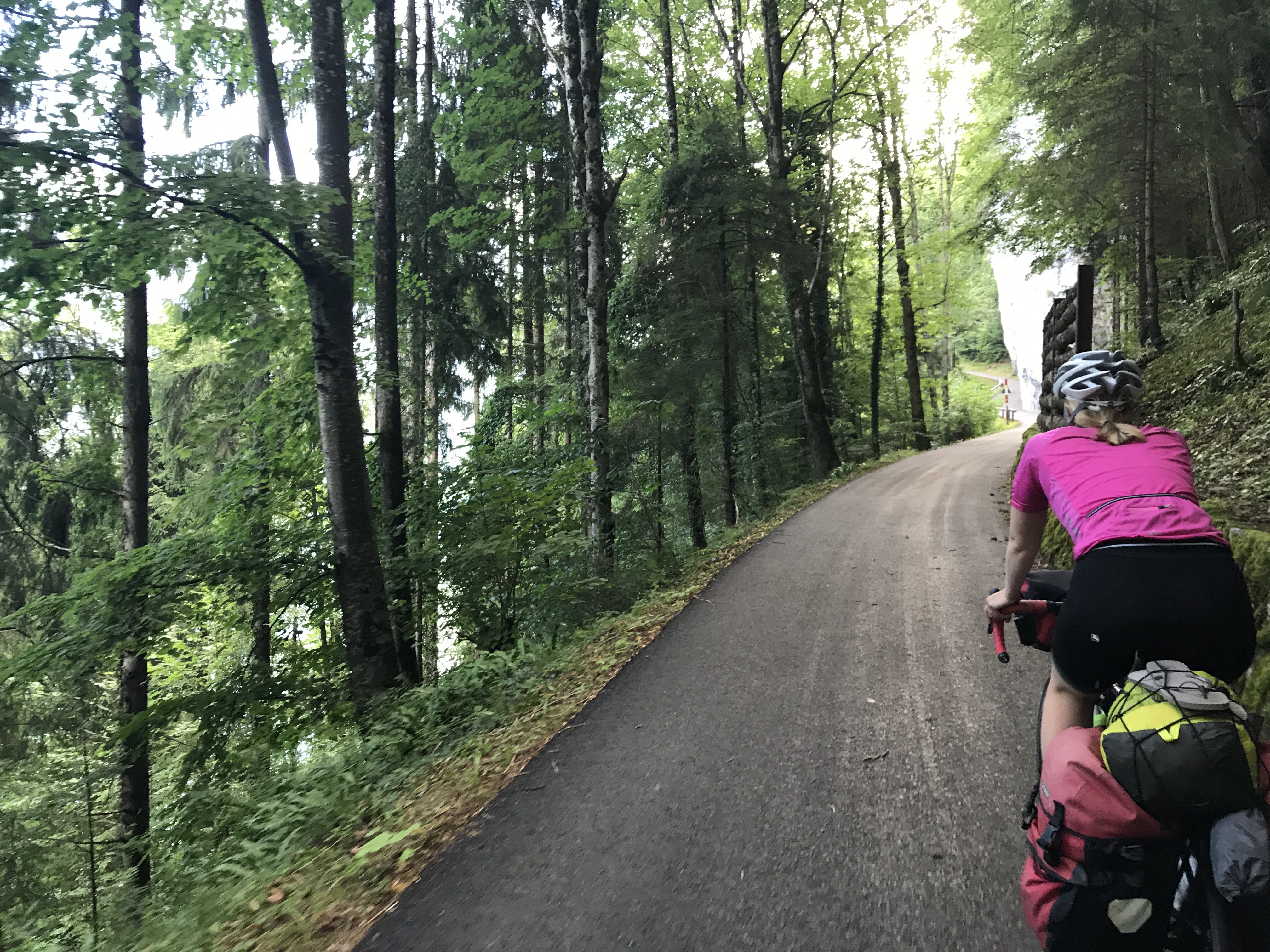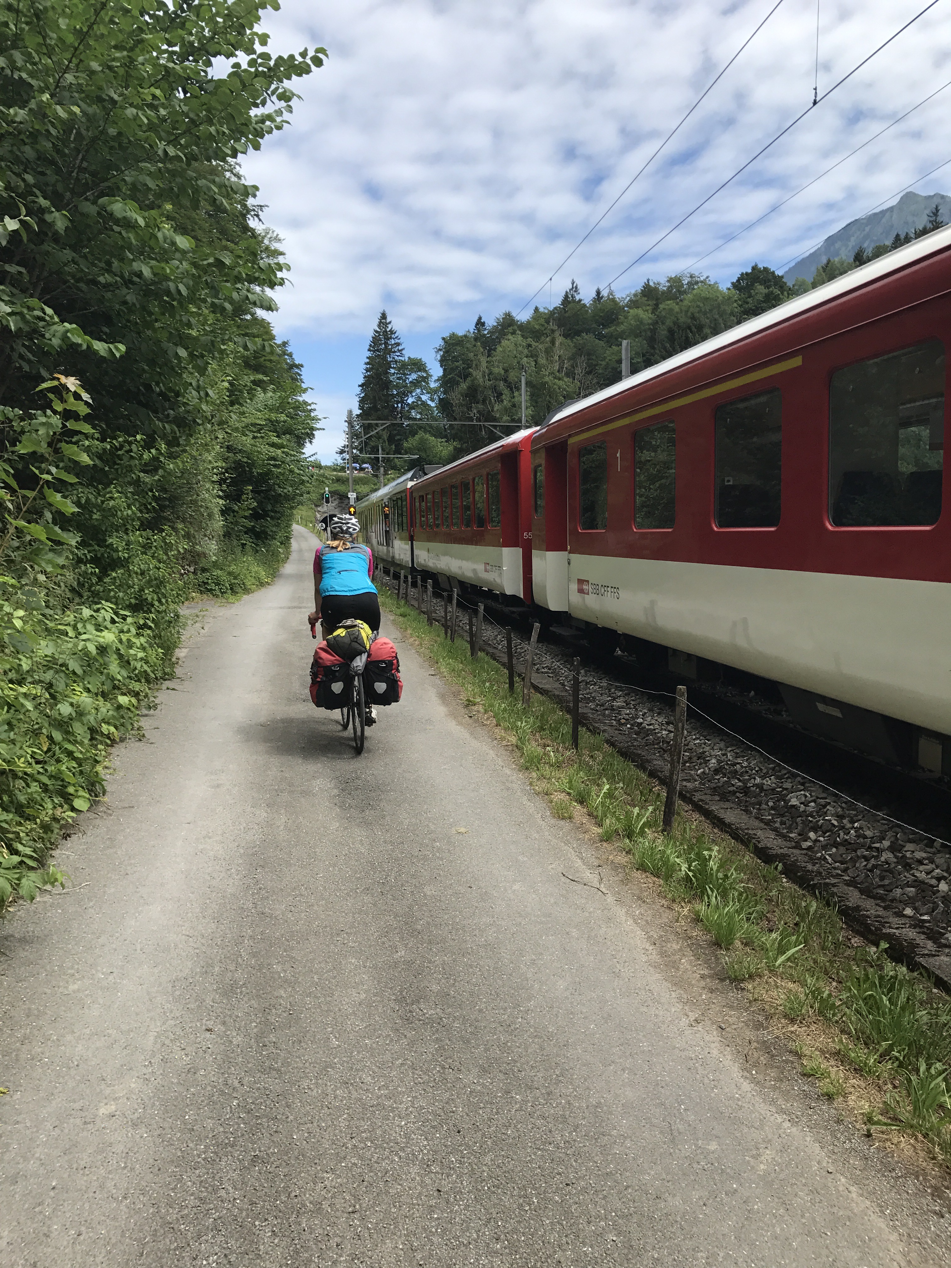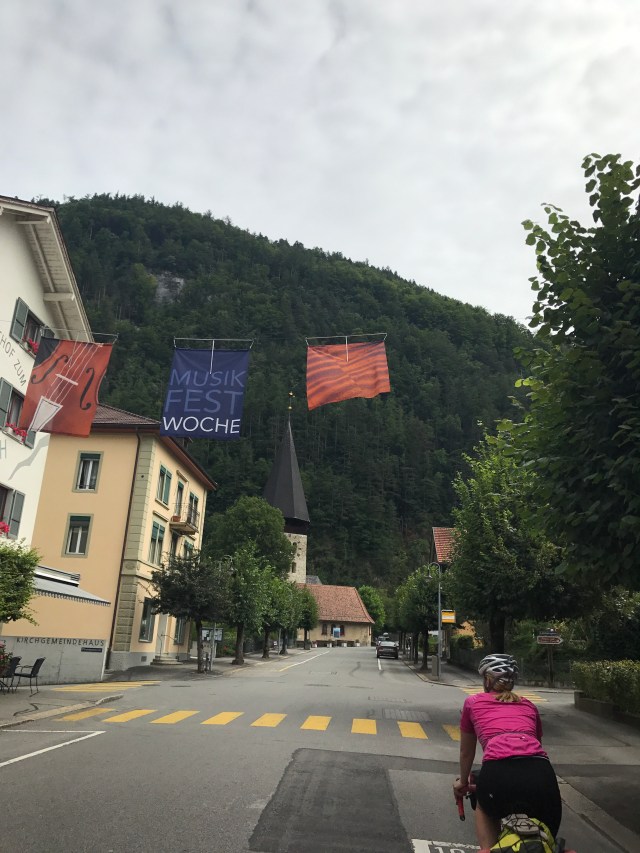 We set off along the very hilly side of Lake Brienze after our first breakfast (yes, this is normal). We stopped at the historic Grandhotel Giessbach to take in the waterfall and cup of coffee. We met a Swiss man who spent a year biking around the world. Biking China is a whole other league than our little Euro velo tour.