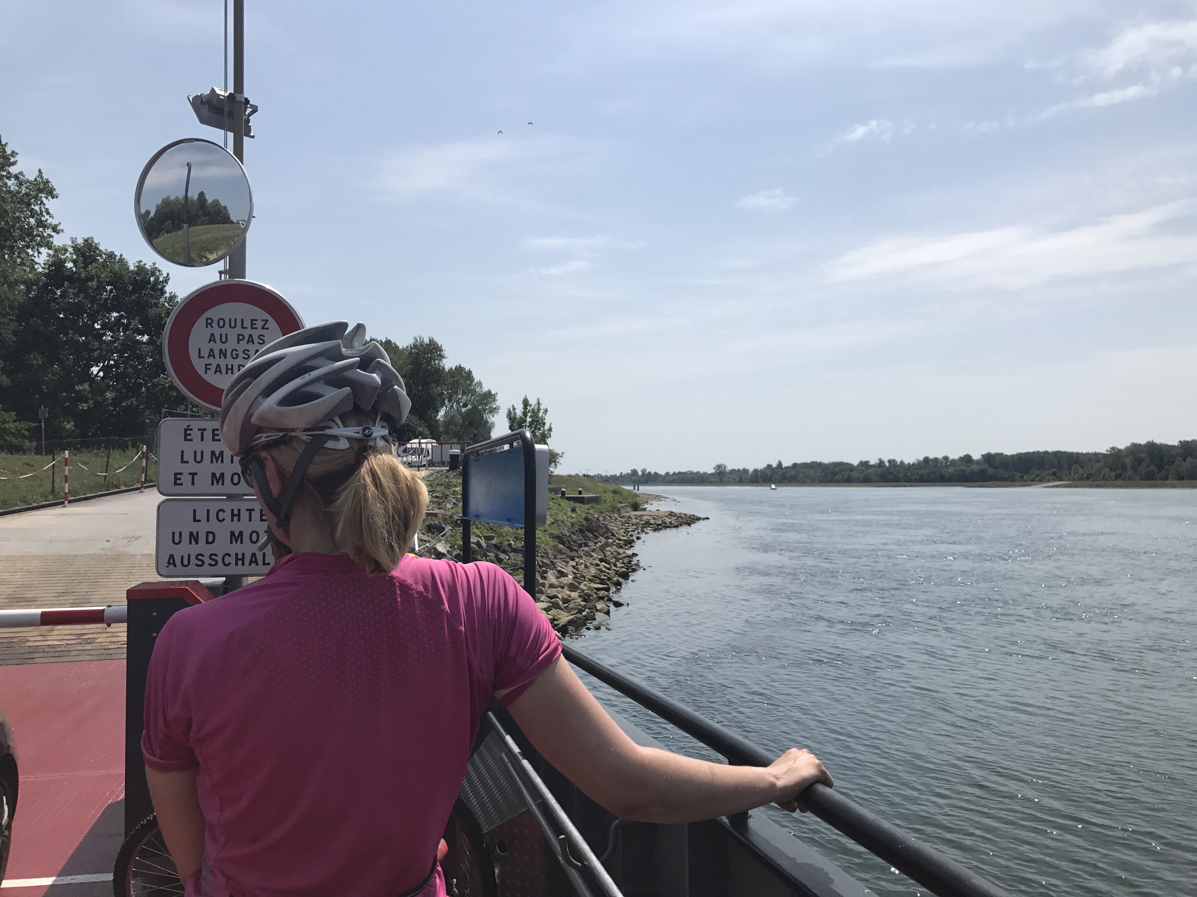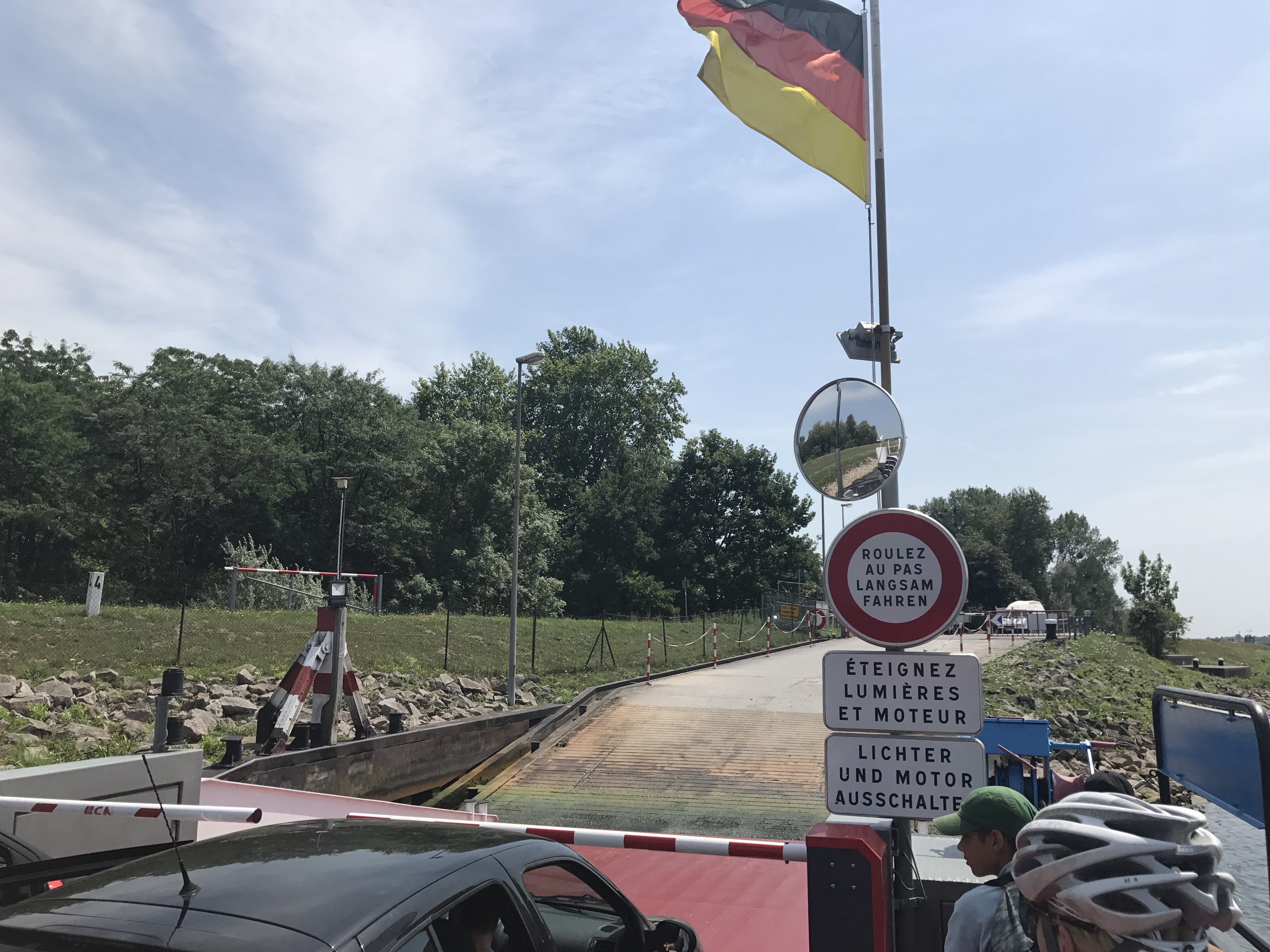 We continued riding on the French side of the Rhine, which was still well-paved but followed more road than canal. After grabbing lunch in Drusenheim, we crossed the Rhine via ferry and continued our way to Baden Baden. The route was mostly unexceptional – following rural roads inland until we reached the town.